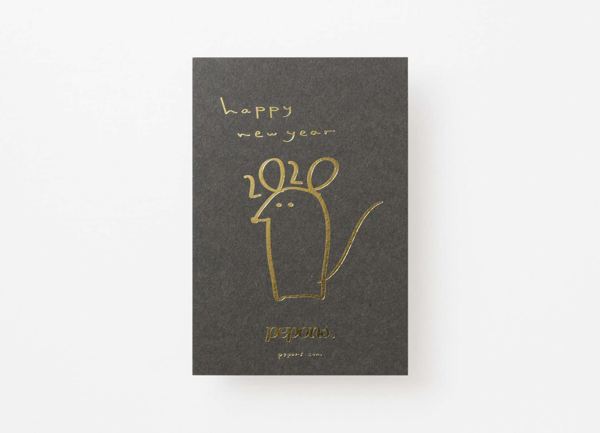 ネズミ色の用紙に金の箔押しでねずみをゆる〜くデザイン。