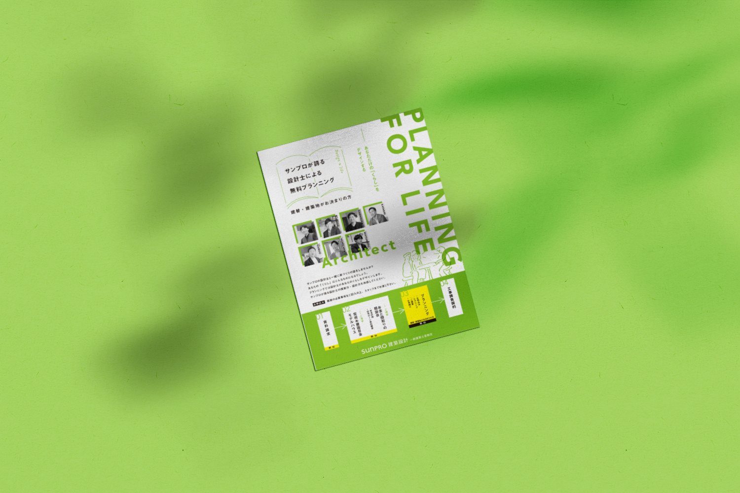 BIカラーのグリーンを全体に使用し、無料プランニングの流れがわかりやすいようなレイアウトにしました。